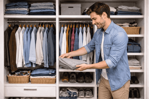 A sensação é de que sempre há algo fora do lugar, mesmo quando está organizado. Pequenos desalinhamentos ficam mais evidentes. Uma camiseta levemente torta já “incomoda”. Uma pilha que não está perfeitamente alinhada chama atenção. Com o tempo, esse excesso visual cansa e desestimula a manutenção da ordem.